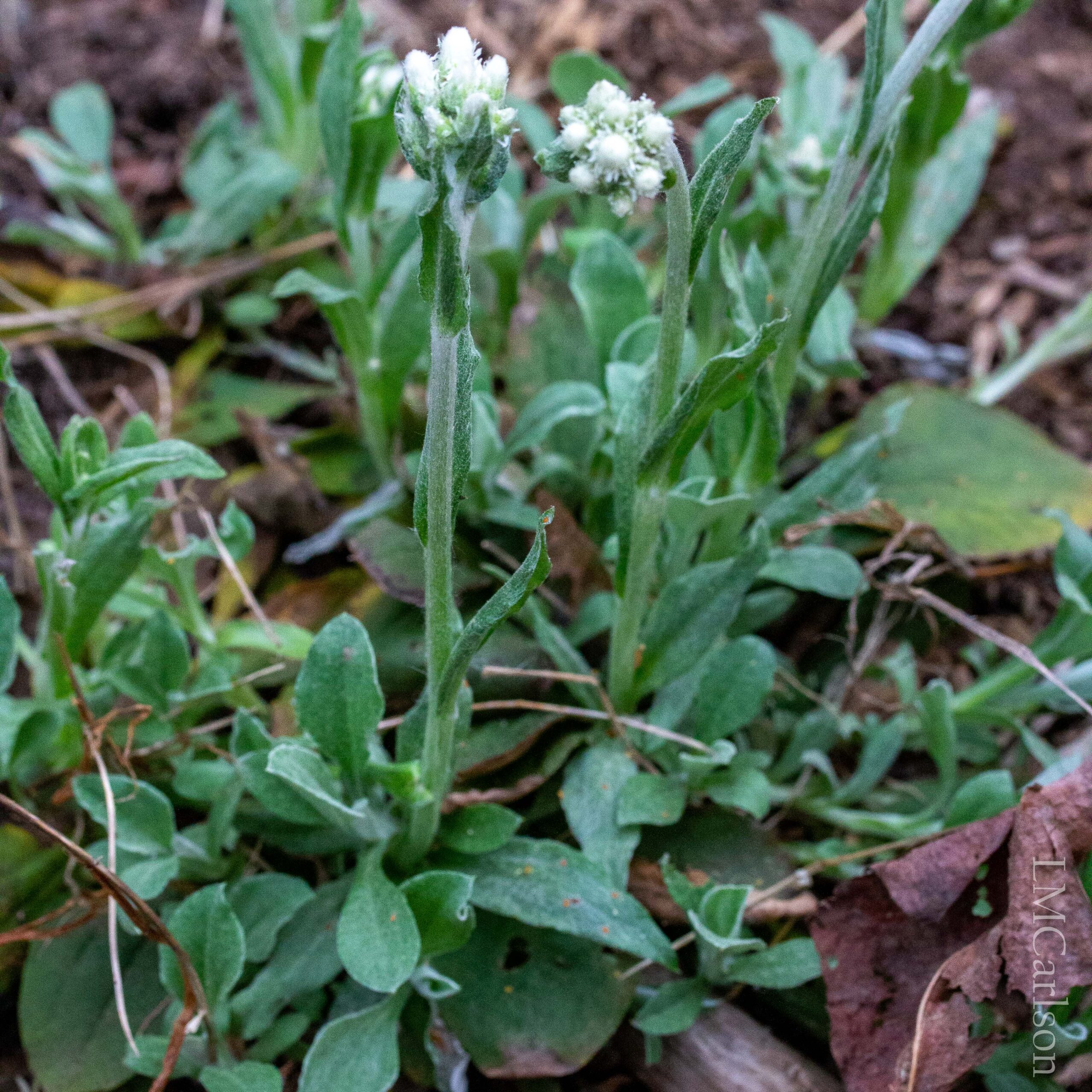 The basal leaves of pussytoes resemble the silvery-white leaves of lamb’s ear. The plants will slowly spread across the area in which they are provided a forever home. In the spring the slender flower stalks will rise above the leaves. The soft flowers are the size and shape of the soft pads of kitty toes (beans). The flowers are used as a nectar source by teensy pollinators such as hover flies and Augochlora sweat bees.